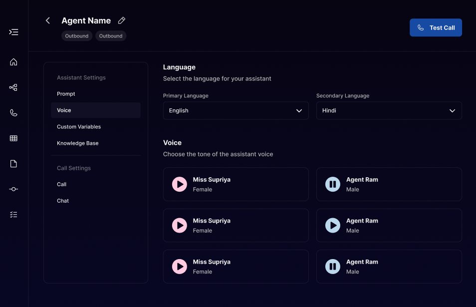 Define your agent's purpose, personality and conversational flow using our simple intuitive tool